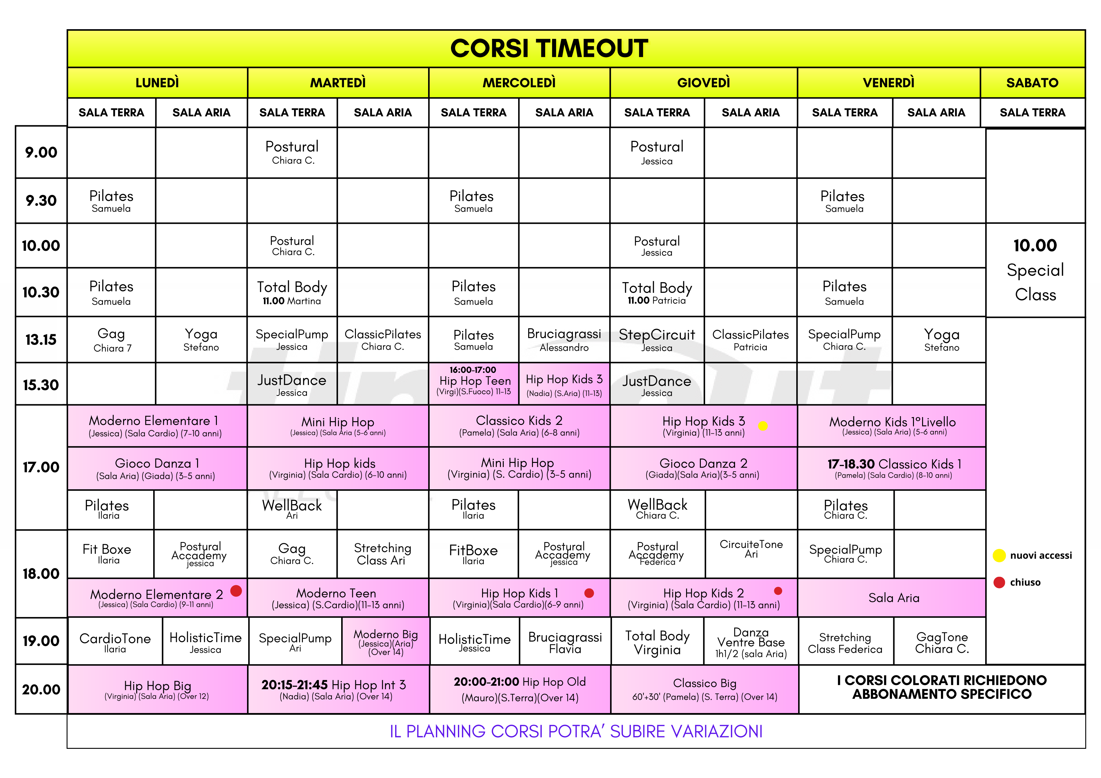 PLANNING CORSI SETTIMANALE
